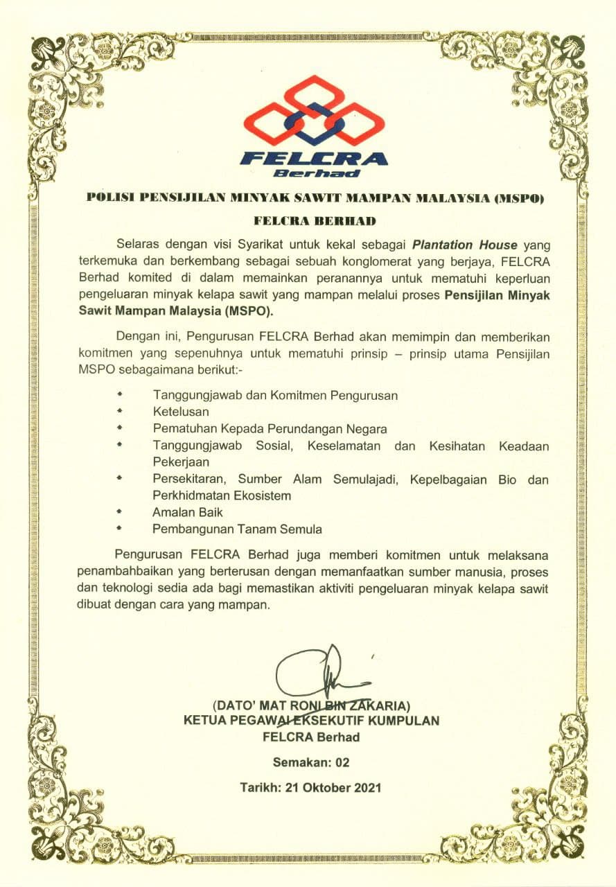 Memberi kepuasan dan merialisasikan pembangunan mampan kepada pihak berkepentingan dengan matlamat kesejahteraan, persekitaran, sosial dan ekonomi secara berterusan.”