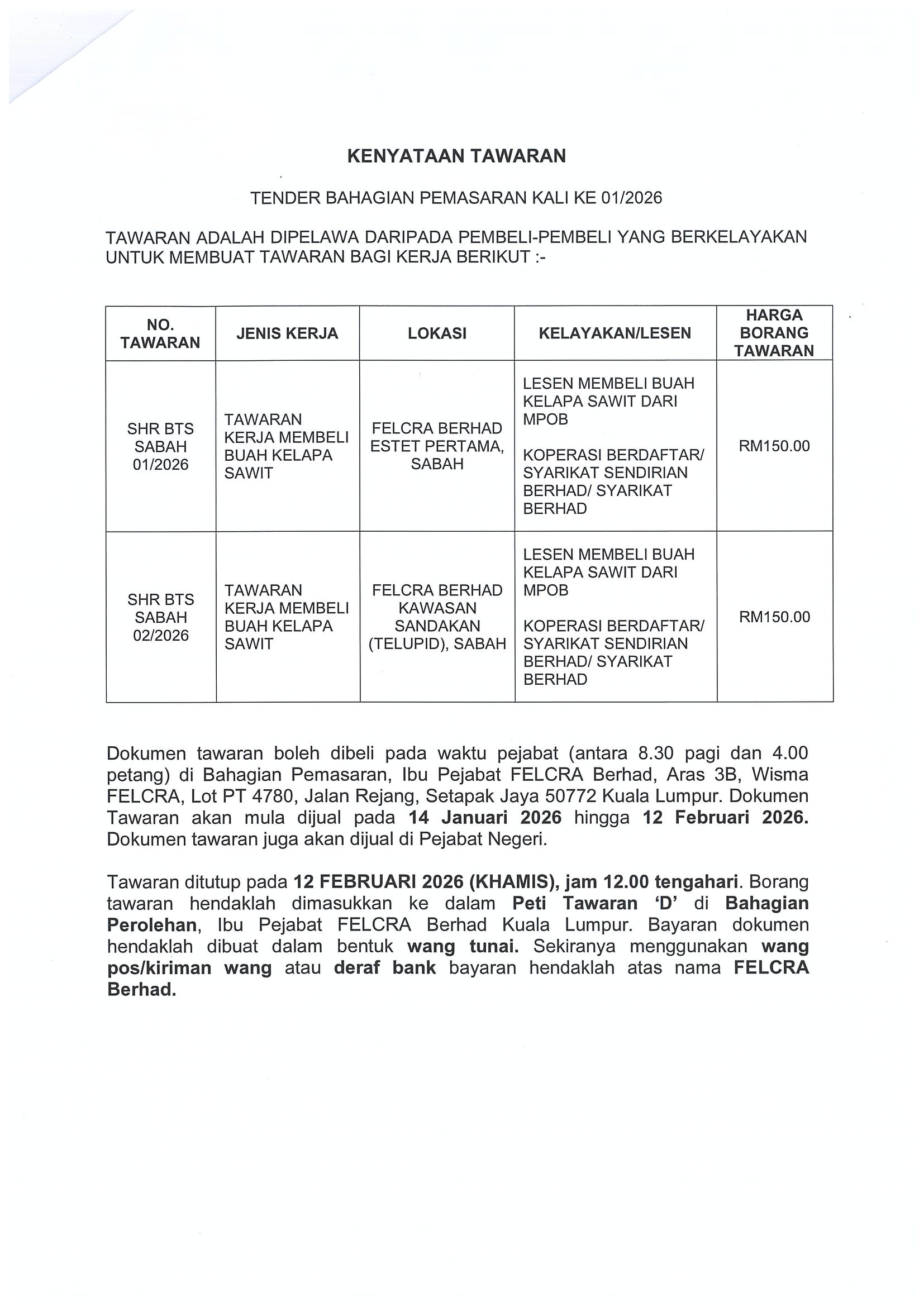 Copyright © 2026 FELCRA Berhad. All Rights Reserved.